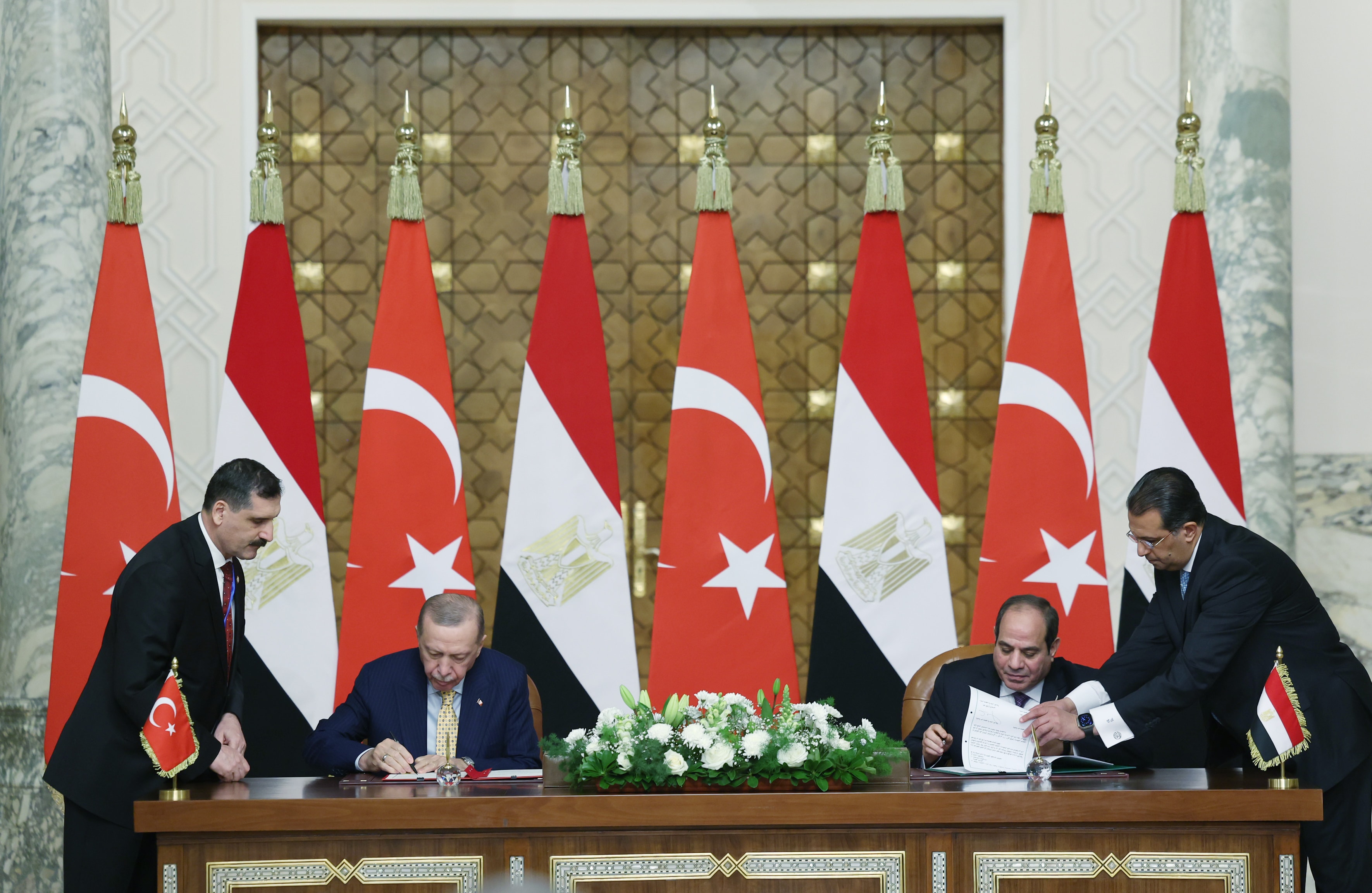 Görüşmenin ardından iki lider basının karşısına geçti. Cumhurbaşkanı Erdoğan ve Mısır Cumhurbaşkanı Sisi, Yüksek Düzeyli Stratejik İşbirliği Konseyi Toplantılarının Yeniden Yapılandırılmasına İlişkin Ortak Bildiriyi imzaladı.
