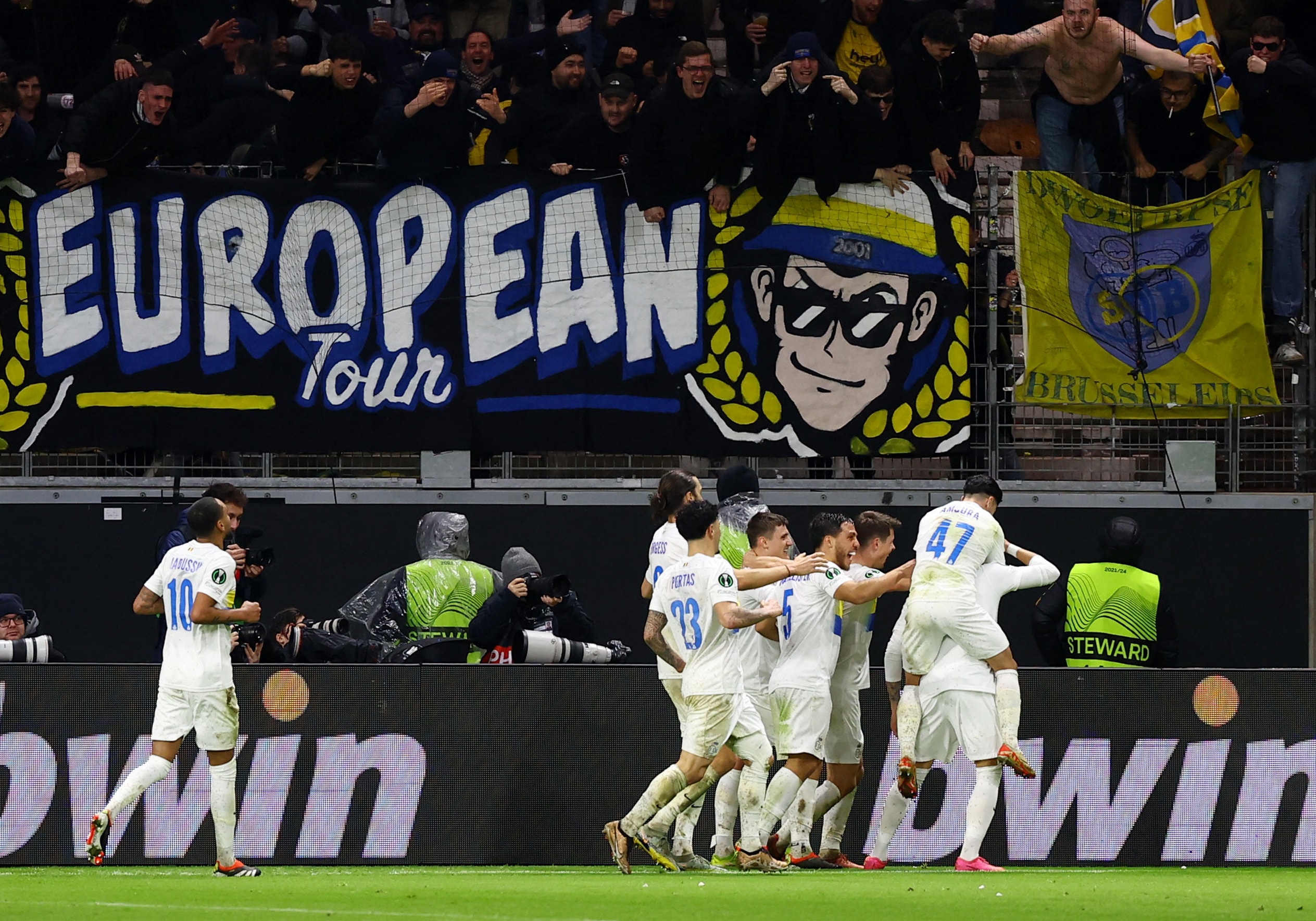 UEFA Avrupa Ligi play-off turunda İsviçre’nin Lugano takımını eleyen Belçika temsilcisi, gruplara kaldı. E Grubu’nda mücadele eden Union SG, İngiltere’den Liverpool, Fransa’dan Toulouse ve Avustralya’dan LASK ile karşılaştı. Biri Liverpool’a karşı olmak üzere 2 galibiyet alan mavi-sarılı takım, ikişer beraberlik ve yenilgi yaşadı. Grubu üçüncü sırada tamamlayan Union SG, yoluna UEFA Avrupa Konferans Ligi’nde devam etti. Play-off turunda Almanya’nın güçlü takımlarından Eintracht Frankfurt’u eleyen Belçika temsilcisi, son 16 turunda Fenerbahçe ile eşleşti.