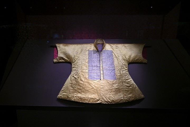 “Biz bunların birini Fatih Köşkü dediğimiz mekanda, bir tanesini de silahlar bölümünde sergilemekteyiz. Onun ötesinde kaftanlar arasındaki en önemli eserlerin başında da zırhlı kaftan gelmektedir. 2 tane zırhlı kaftanı var ve bu kaftanlar da ipek olmasına ve içinde zırh olmasına rağmen günümüze kadar çok fazla bir bozulmaya uğramadan gelmiştir. Onun ötesinde yine Fatih Sultan Mehmet’in vefat ettiği zaman üzerindeki kıyafetler de çıkarılmış ve onu da yine biz bu depoda muhafaza etmekteyiz.”