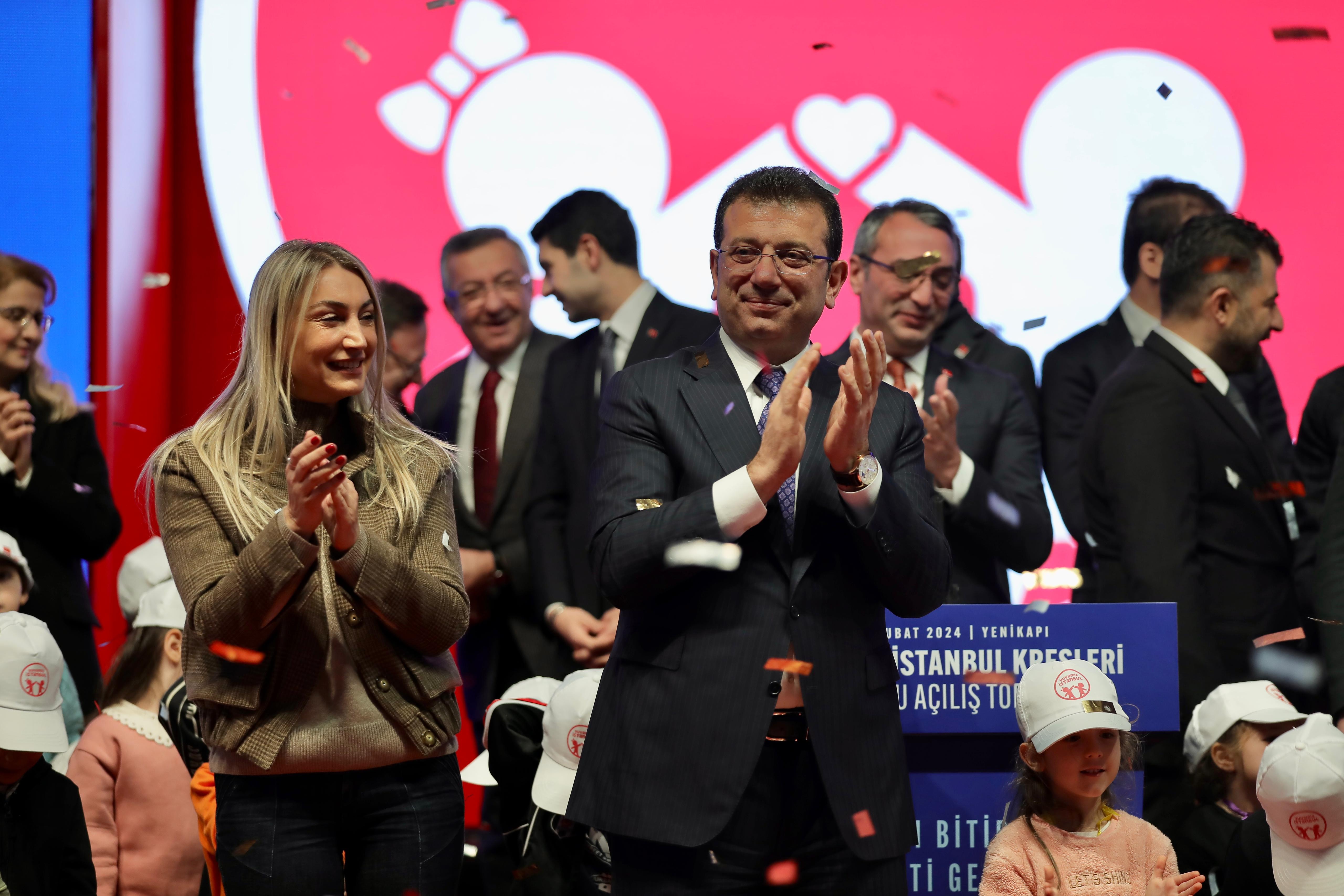 İmamoğlu ve eşi Dr. Dilek Kaya İmamoğlu, açılış törenini kreşlerde eğitim gören çocuklarla birlikte izledi.