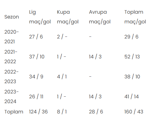Kerem Aktürkoğlu’nun sezonlara göre Galatasaray kariyerindeki maç ve gol sayıları şöyle: