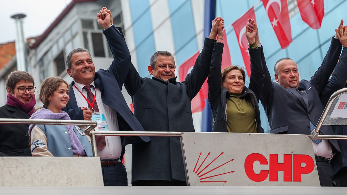 Özel, konuşmasının ardından CHP Uşak merkez ve ilçe belediye başkan adayları için destek istedi.