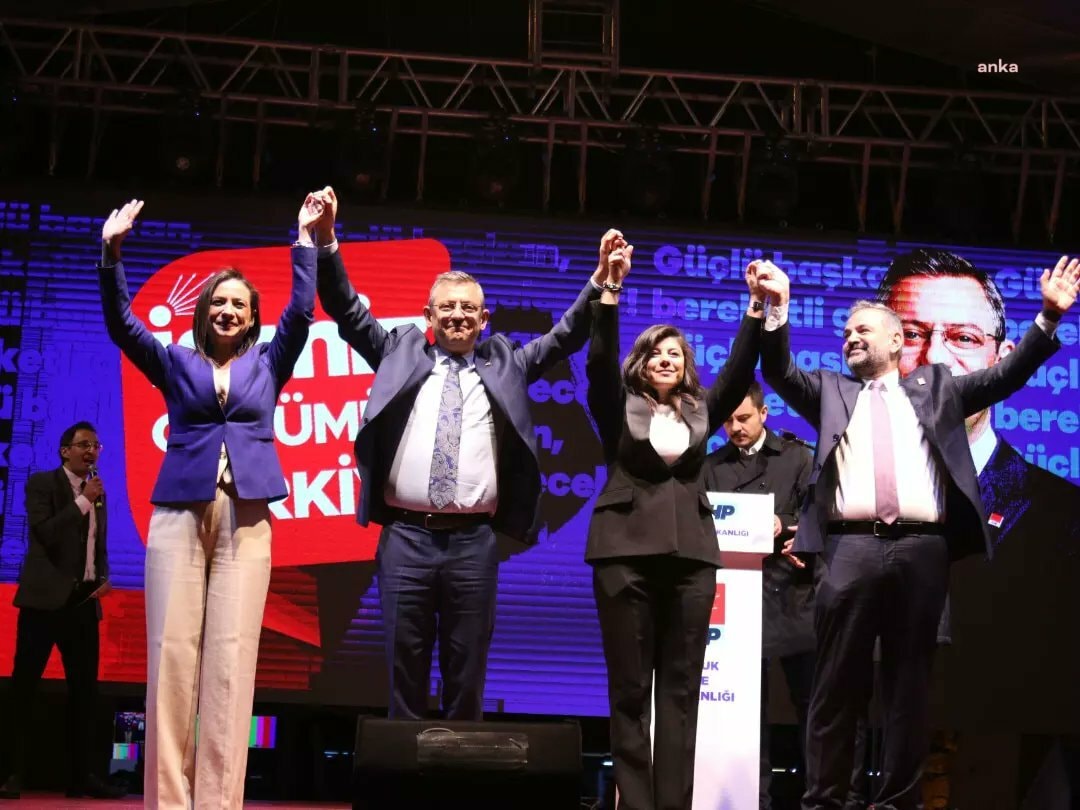 CHP Efes Selçuk Belediye Başkanı ve Adayı Filiz Ceritoğlu Sengel’in, Selçuk’taki istasyon Meydanı’nda gerçekleştirdiği proje tanıtım toplantısına CHP lideri Özgür Özel’de katıldı.