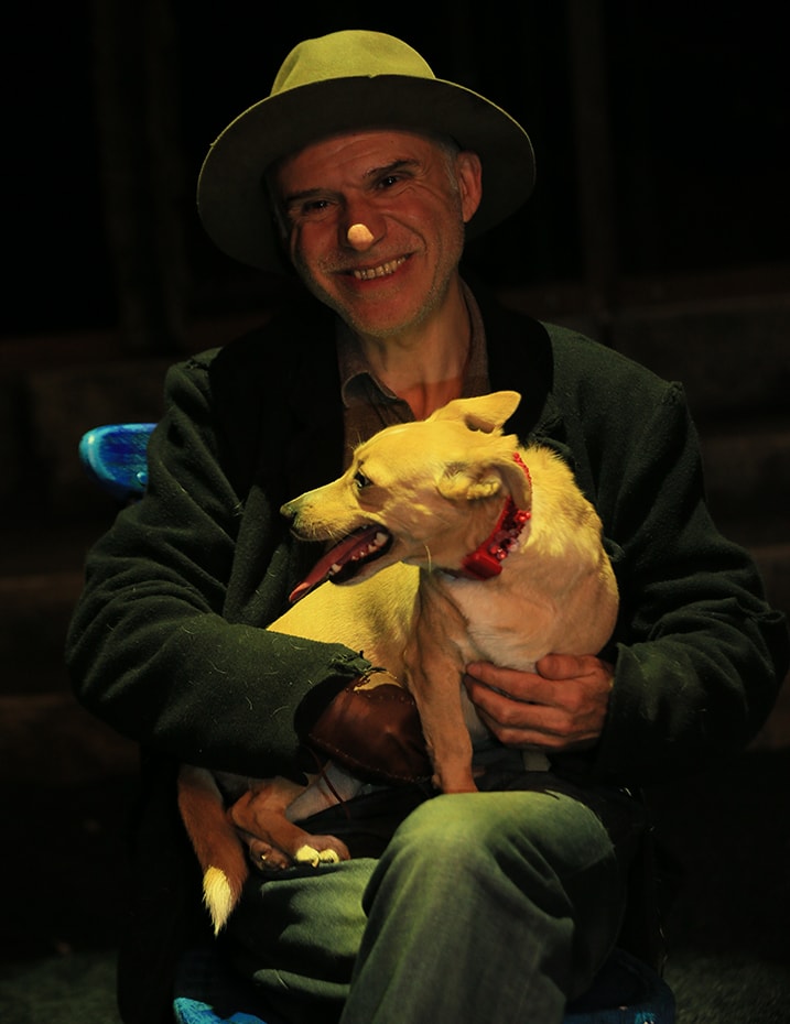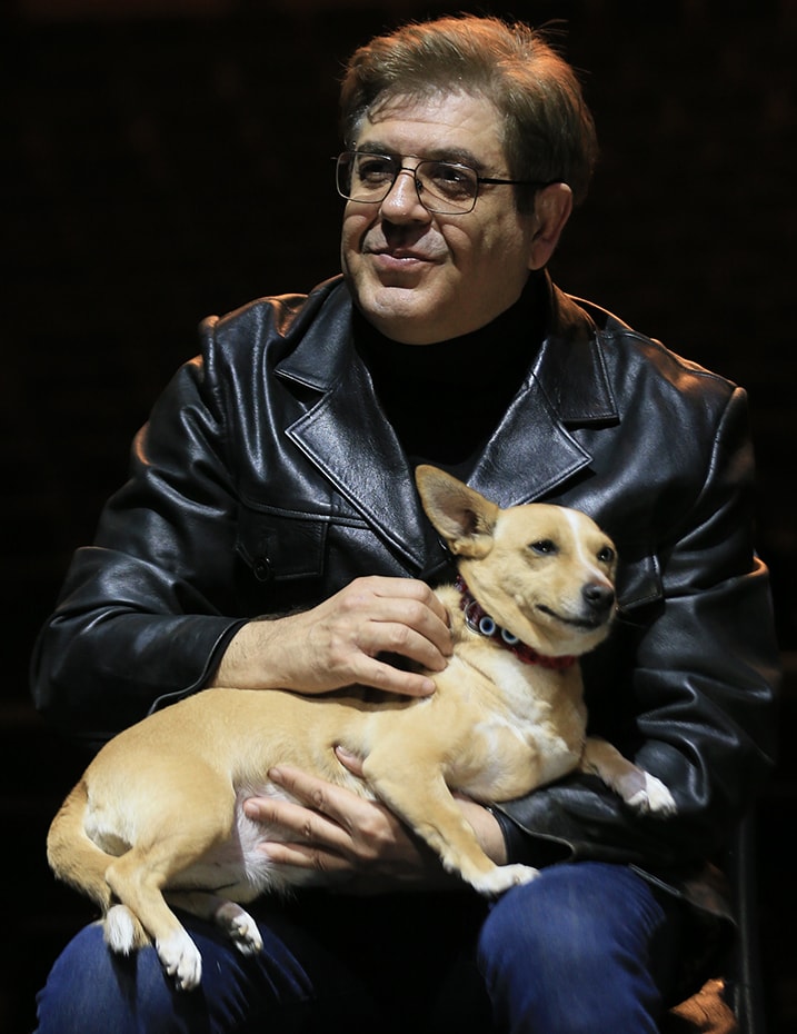 “Şebo bu rolde dördüncü oyuncumuz. İlk üç oyuncuyu sahiplendirdik. Her iki sezonda bir Fareler ve İnsanlar oyununda sokaktan, barınaktan bulduğumuz can dostlarımızı insanlarla buluşturup sahiplendiriyoruz. Belki de biraz hayatlarını kurtarıyoruz. Şebo’ya evde bakıyorduk eşimle bu sürede. Onu çok sevdik ve sahiplendik. Şimdi hem tiyatromuzun oyuncularından biri hem de bizim köpeğimiz olarak yaşamına devam ediyor.”