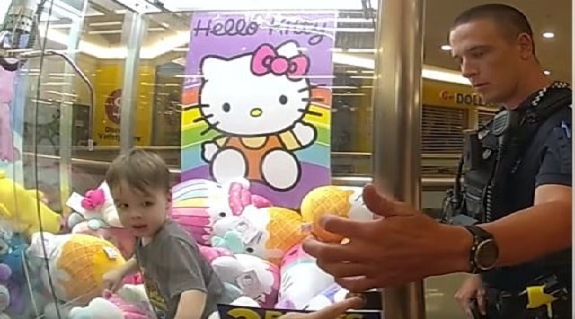 Avustralya’nın Brisbane kentindeki alışveriş merkezinde pelüş oyuncaklar bulunan oyuncak yakalama makinesi, 3 yaşındaki Ethan’ın ilgisini çekti.