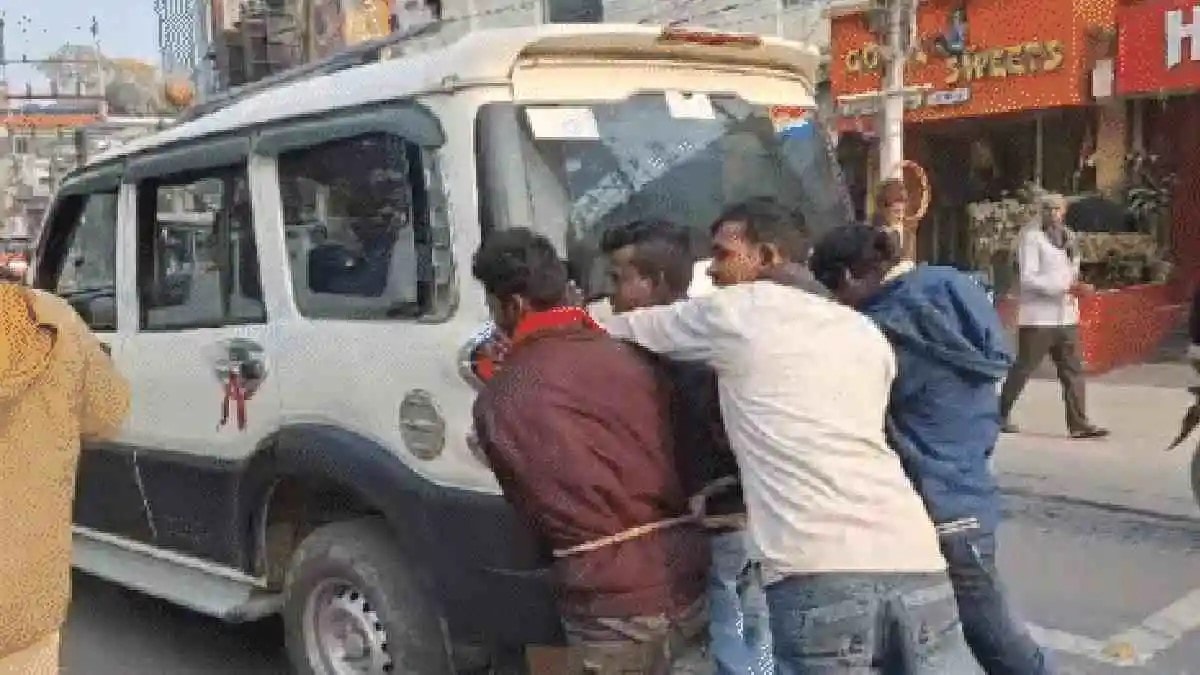 Bellerine ip bağlanarak kaçmaları önlenen 4 kişi, polis gözetiminde aracı 500 metre boyunca iterek yol kenarına çekti.
